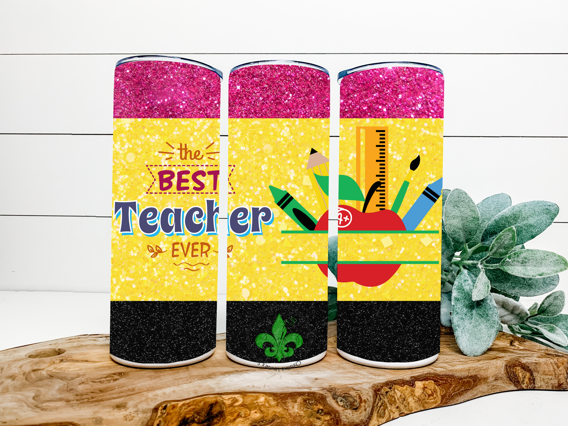 Best Teacher Ever Pencil Personalized Tumbler, 20 Oz. Insulated Tumbler with Lid and Straw
