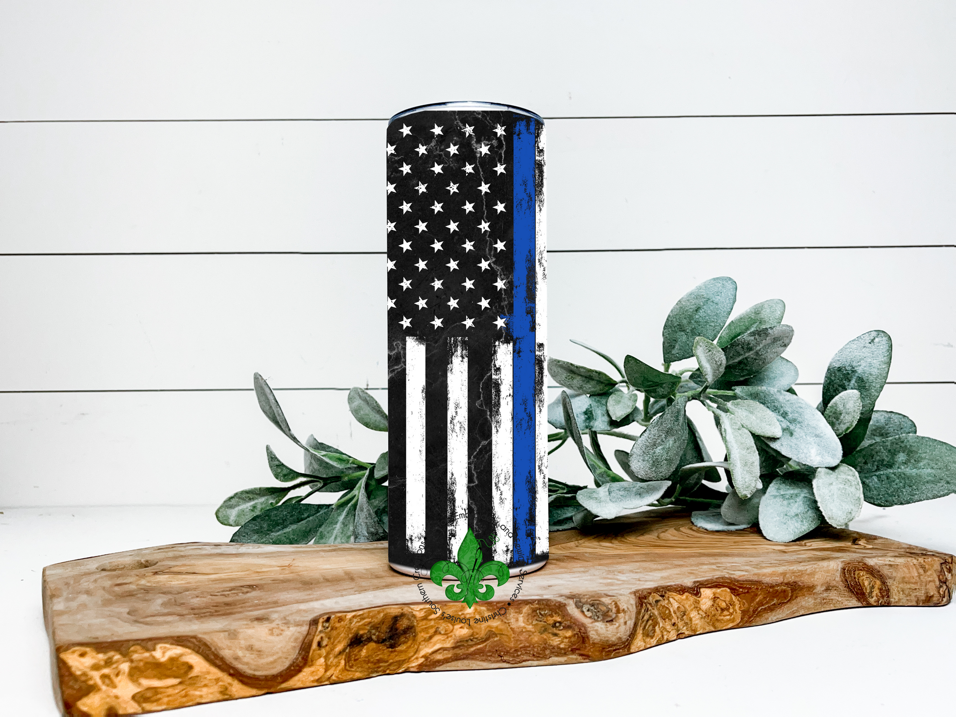 Blue Line Police Flag Tumbler, 20 Oz. Insulated Tumbler with Lid and Straw