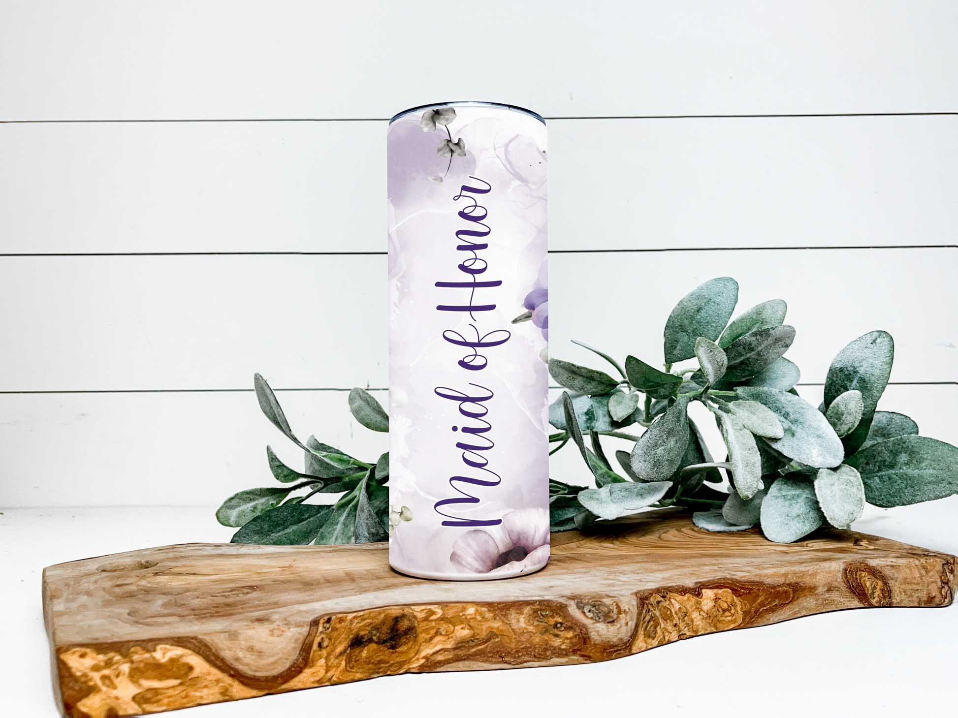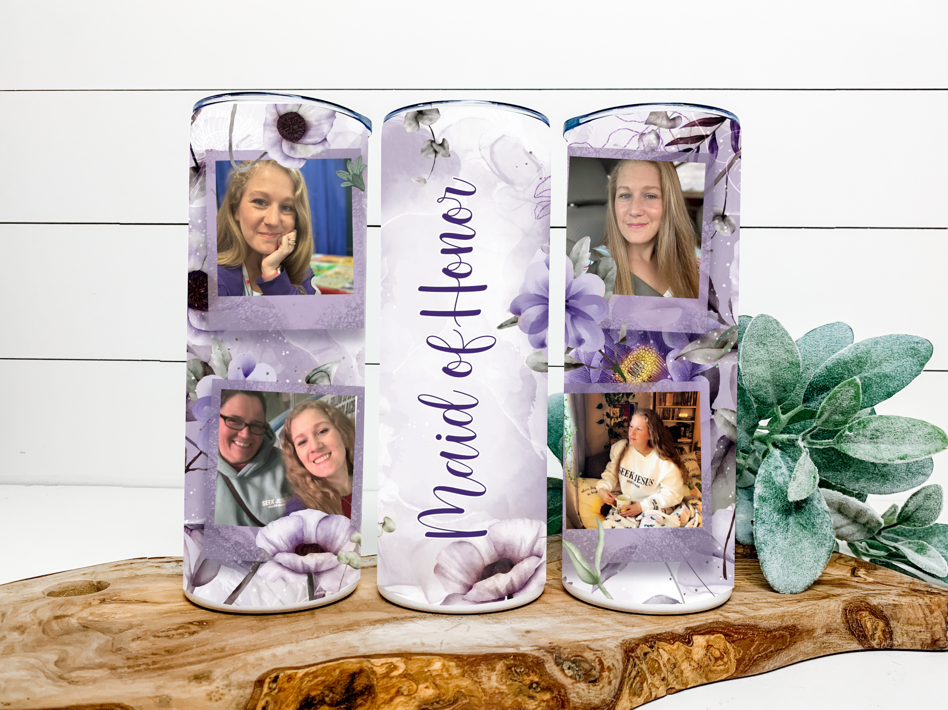 Maid Of Honor Purple Photo Personalized Tumbler, 20 Oz. Insulated Tumbler with Lid and Straw