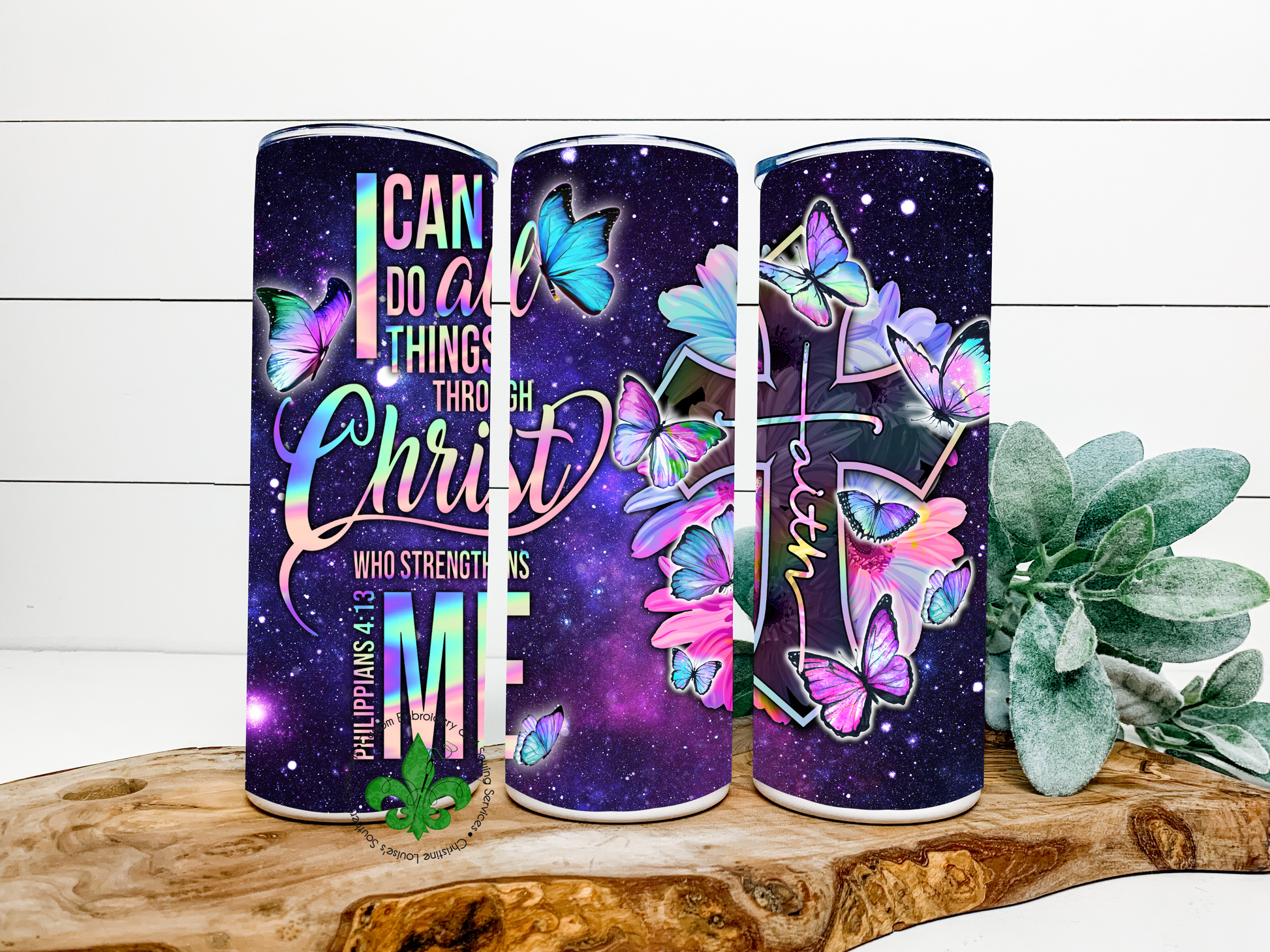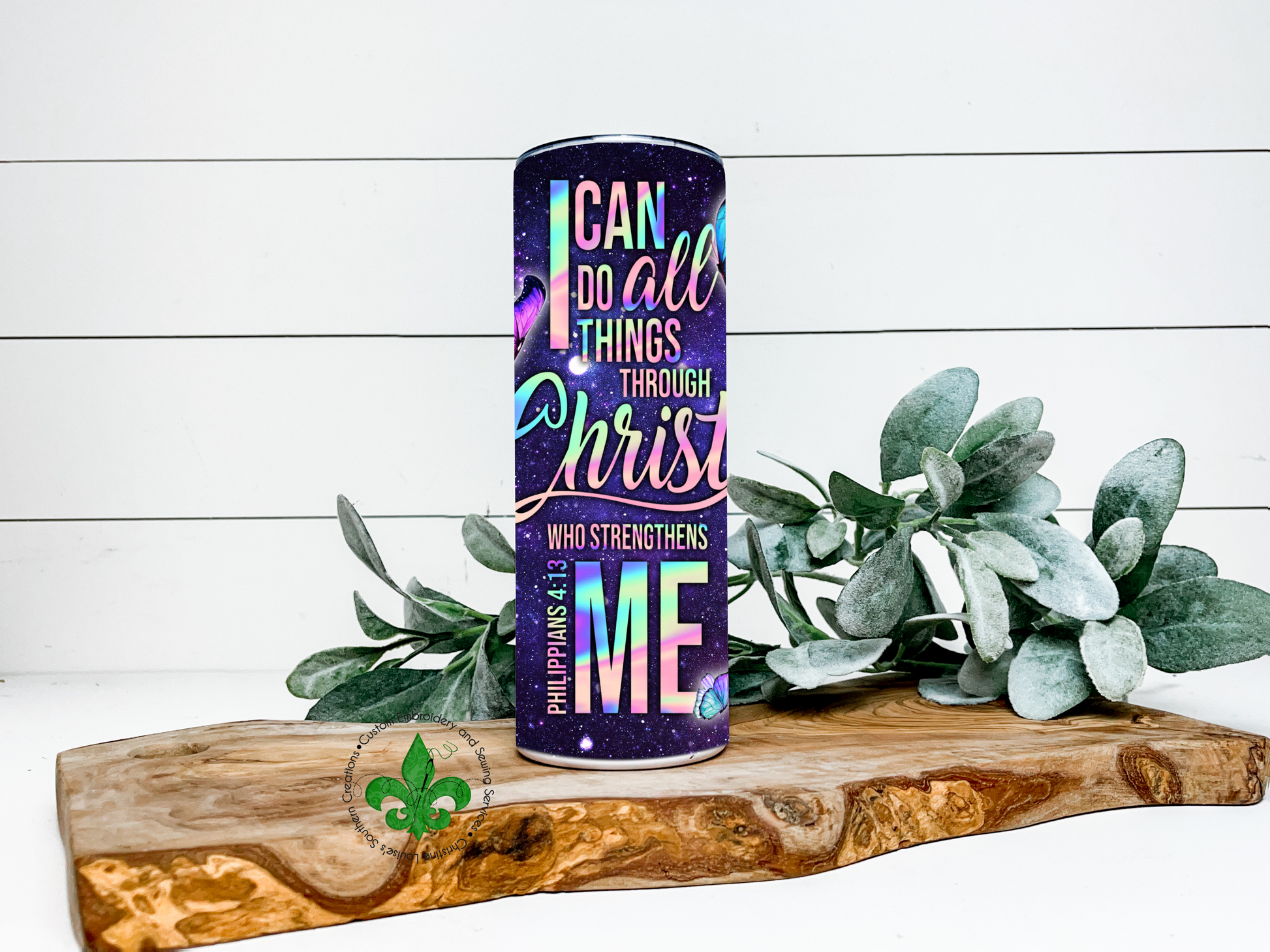 Purple I Can Do All Things Through Christ Faith Tumbler, 20 Oz. Insulated Tumbler with Lid and Straw