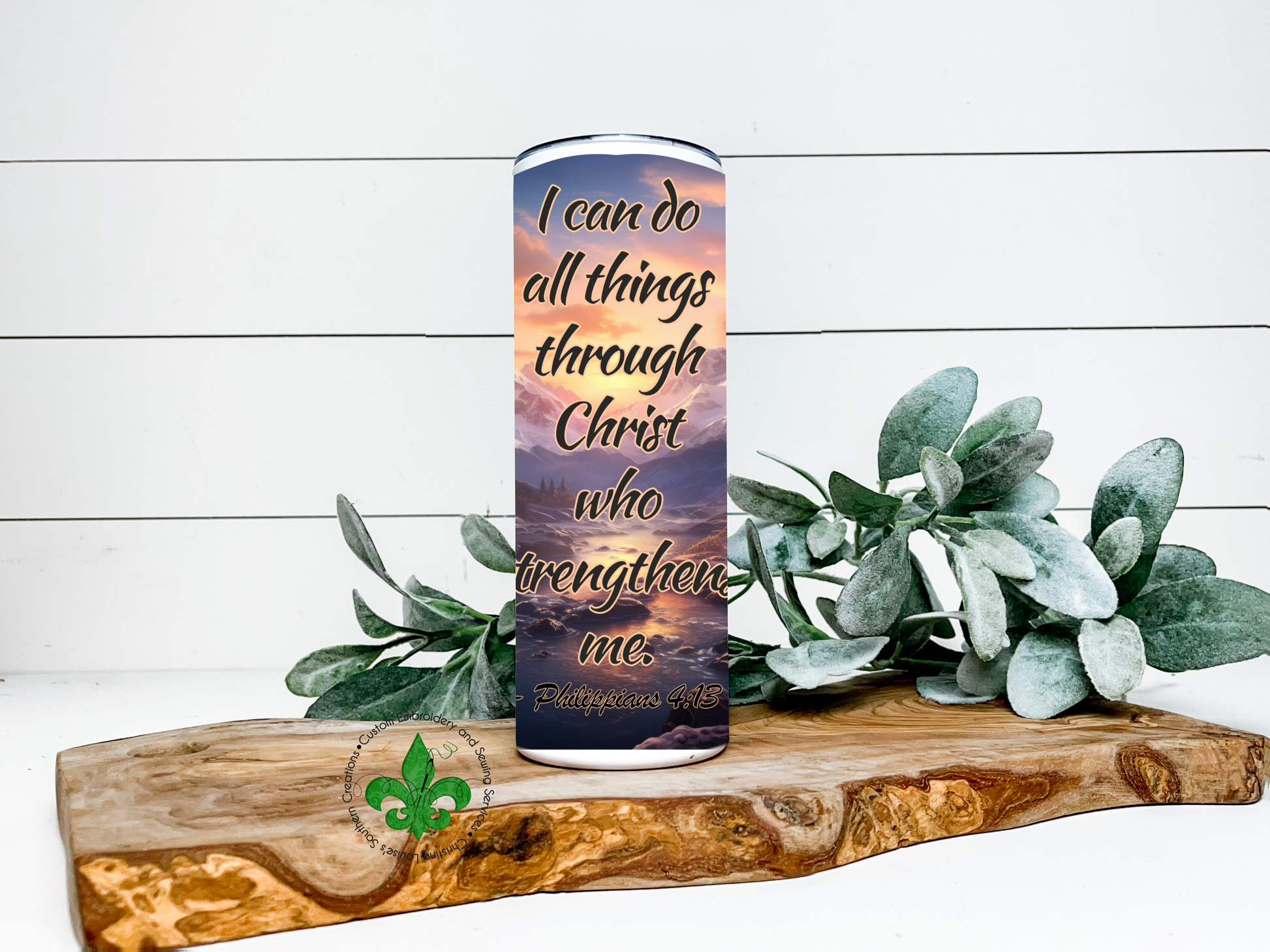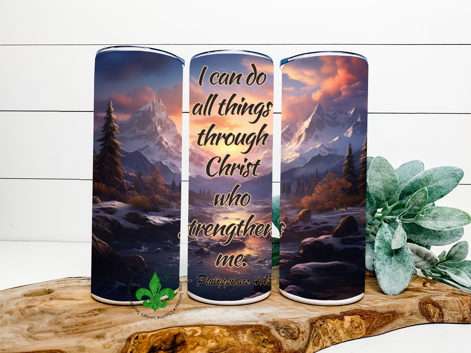 Mountains I Can Do All Things Through Christ Faith Tumbler, 20 Oz. Insulated Tumbler with Lid and Straw