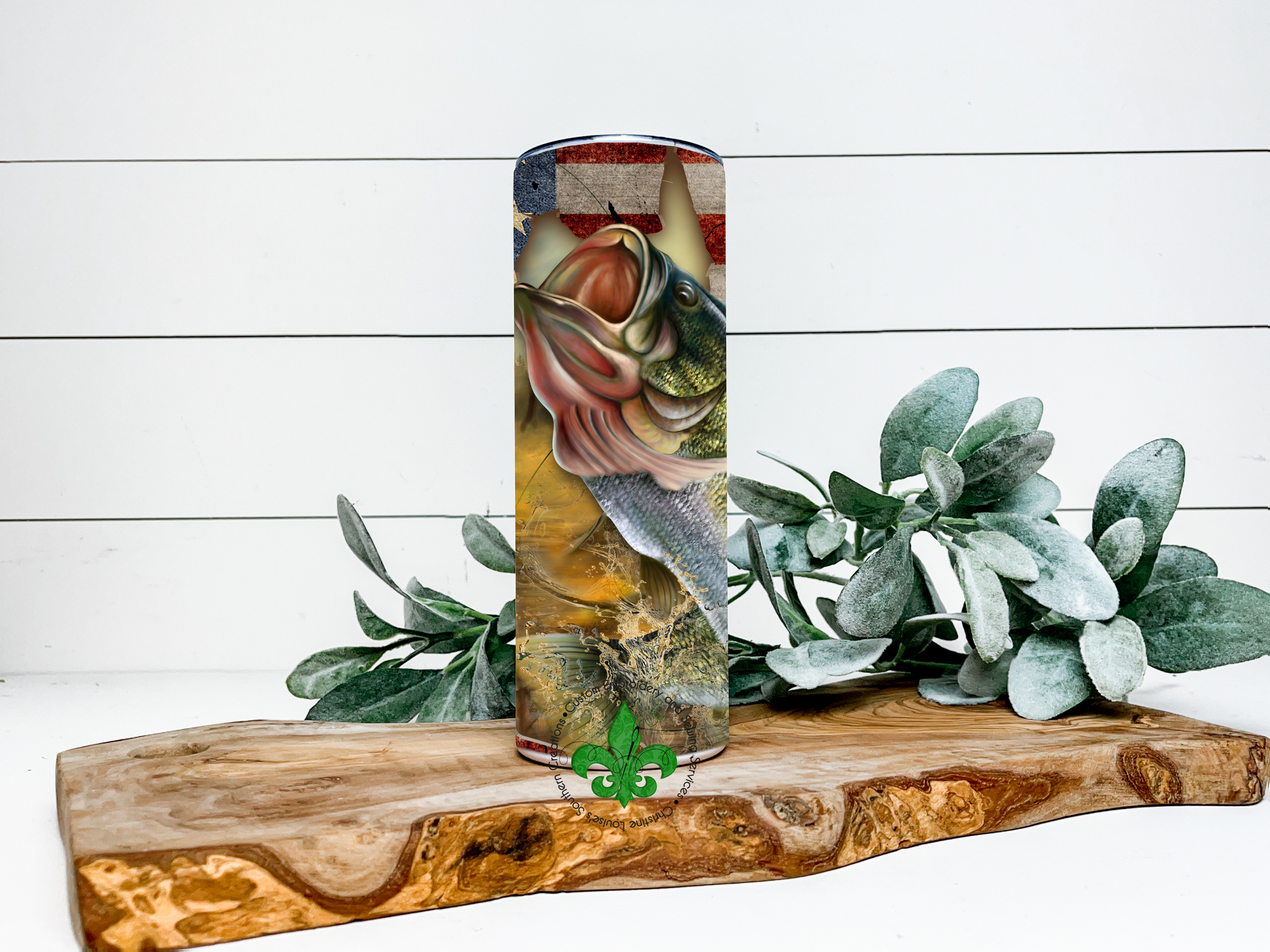 Fishing American Flag Tumbler, 20 Oz. Insulated Tumbler with Lid and Straw