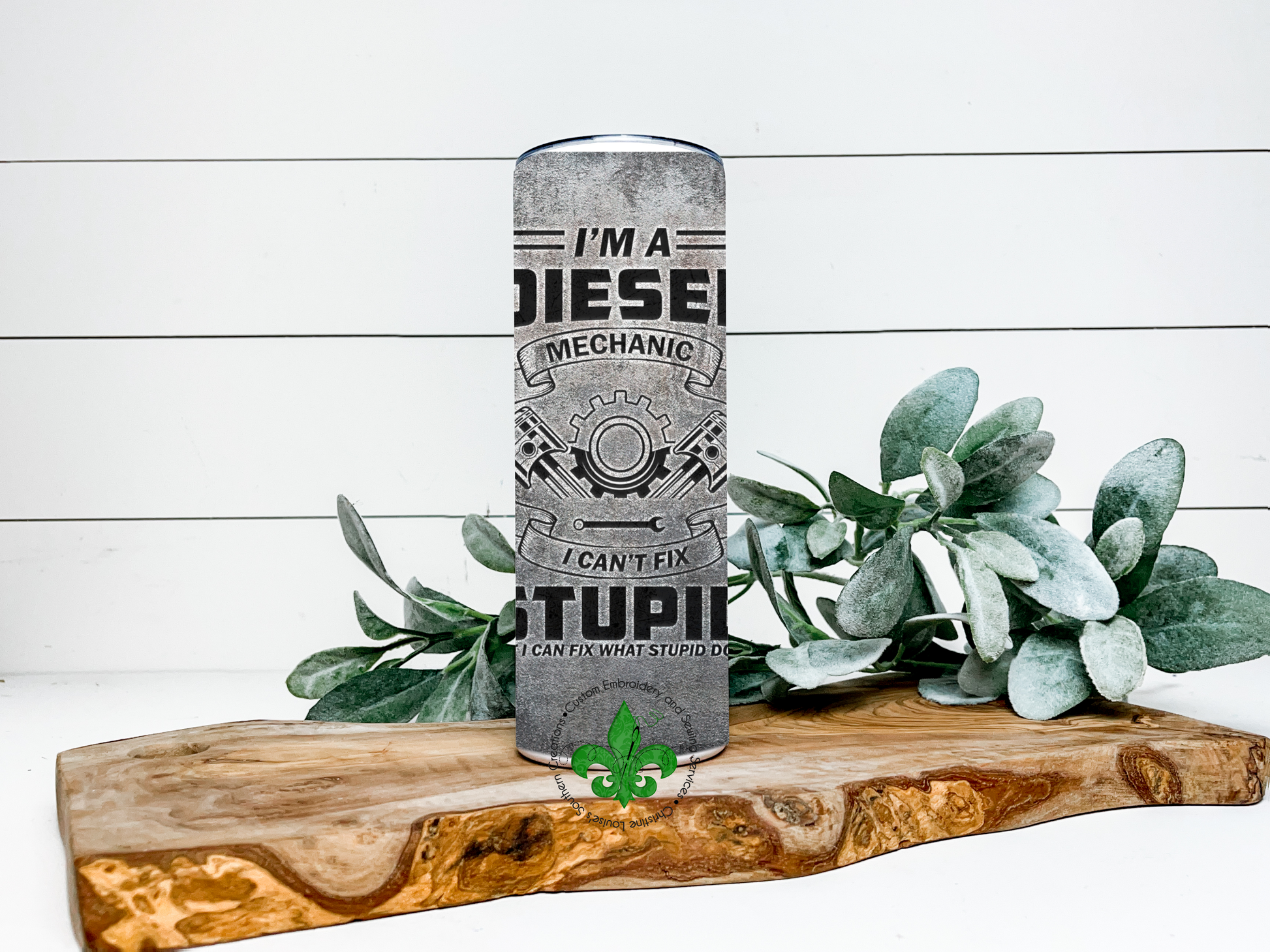 Diesel Mechanic Tumbler, 20 Oz. Insulated Tumbler with Lid and Straw